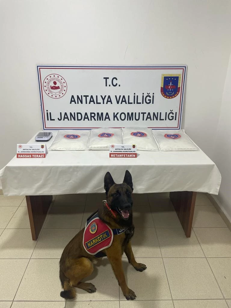 Antalya Valiliği İl Jandarma Komutanlığı ekipleri, uyuşturucu madde imal ve ticaretine yönelik çalışmalarıyla uyuşturucu tacirlerine darbe üstüne darbe vurmaya devam ediyor. Manavgat Cumhuriyet Başsavcılığı talimatları doğrultusunda; Antalya İl Jandarma Komutanlığı, Kaçakçılık ve Organize Suçlarla Mücadele Şube Müdürlüğü, Alanya İlçe Jandarma Komutanlığı, Manavgat İlçe Jandarma Komutanlığı ekipleri Narkotik Dedektör Köpeği Bayır ve MİT destekli 2 ayrı adreste müşterek olarak operasyon düzenlendi. Yapılan arama sonucunda; K.P., İ.M ve A.G. isimli şahıslardan 10 kilo 200 gram metamfetamin maddesi ve 1 adet hassas terazinin ele geçirildiği belirtildi.