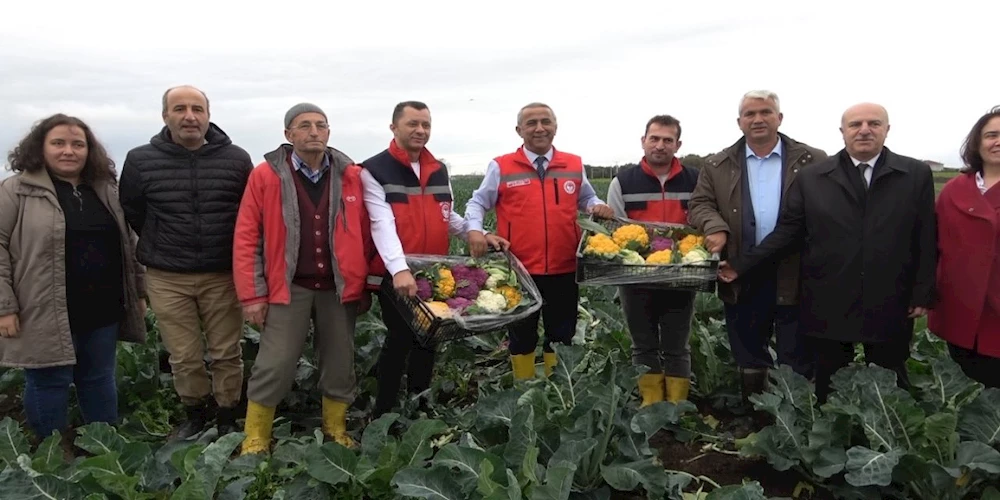Hasat alanında incelemelerde bulunan İl Tarım ve Orman Müdürü İbrahim Sağlam, 'Bugün Bafra Ovası'ndayız, verimli topraklardayız. Sadece renkli karnabahar ile ilgili değil sebze üretiminde baktığımızda 2022 yılı içerisinde toplam 870 bin ton gibi yazlık ve kışlık üretimimiz mevcut. Burada en başta lahana, kırmızı lahana, pırasa, karnabahar toplamda 870 bin ton üretimimiz var. Karnabaharda da toplam 16 bin dekar alanda 60 bin tona yakın ürünümüz mevcut. Geçtiğimiz yıl içerisinde turuncu, sarı, mor ve değişik renklerdeki karnabahar için dış pazardan bir talep geldi. Bugün Osmanbeyli Mahallesi'nde hasadını yaptığımız çiftçimiz hem üretimini yapıyor hem paketlenmesini yapıyor hem de ihracatını yapıyor. Toplam 100 dekar alanda Tarım ve Orman Bakanlığımızın 'Tarım Arazilerinin Kullanılmasının Etkinleştirmesi Projesi' kapsamında burada bir proje uyguladık. 150 bin TL'lik bir proje. 250 bin adet renkli karnabahar fidesini çiftçilerimizle buluşturduk. Artık alternatif ürünümüz oluştu burada. Seneye bin ila bin 500 arasında bir talep olacak' dedi.
