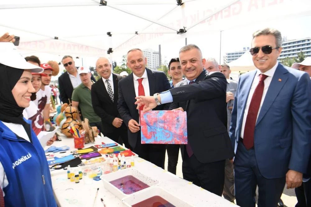 Muratpaşa, Aksu ve Özgecan Aslan Gençlik Merkezleri tarafından el yapımı eşya, resim, ahşap, taş boyama vb. eşyaların yer aldığı sergiyi gezen Vali Yazıcı, gençlerden ürünlerin yapılışı ve sergi hakkında bilgi aldı. Antalya Gençlik ve Spor İl Müdürlüğü’nün organizasyonunda tenis, masa tenisi, dart, okçuluk, tekvando, basket, satranç, paten, bisiklet, badminton ve Antalya Binicilk Atlı Spor Kulübü tarafından gerçekleştirilen at gösterilerini büyük bir beğeni ile izleyen Vali Yazıcı, gençlerle birlikte tenis ve masa tenisi oynadı.