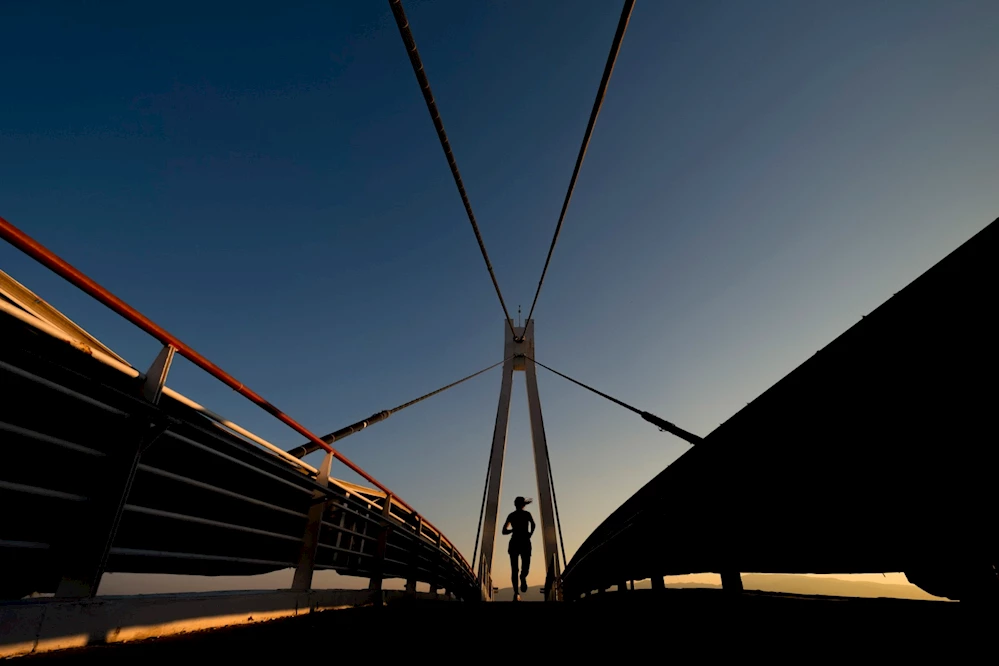 İzmir, Güzelyalı Köprüsü’nde sabah sporu yapan bir kadın.