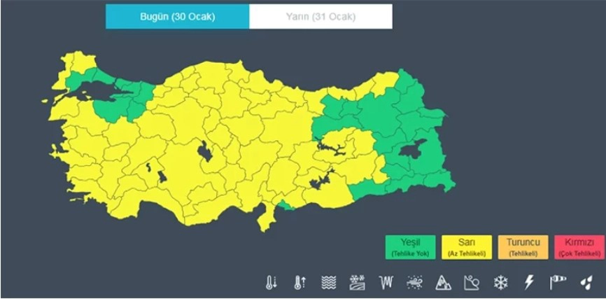 58 İLDE SARI KODLU UYARI