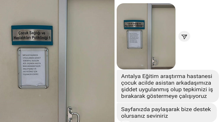 Antalya Eğitim ve Araştırma Hastanesi'nin çocuk acil bölümünde asistan hekime hasta yakını tarafından uygulanan şiddet sonucunda iş bırakma eylemine gidildi.