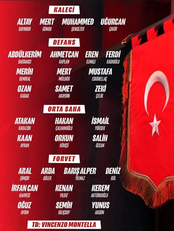 Teknik Direktör Vincenzo Montella tarafından belirlenen kadroda 30 futbolcu bulunuyor.