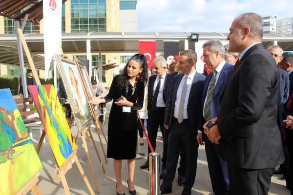 Adalet Bakanlığı tarafından Cumhuriyet'in 100'üncü yıl etkinlikleri kapsamında Antalya Adliyesi bahçesinde 13 sanatçının 55 eserinin yer aldığı resim sergisi açıldı.