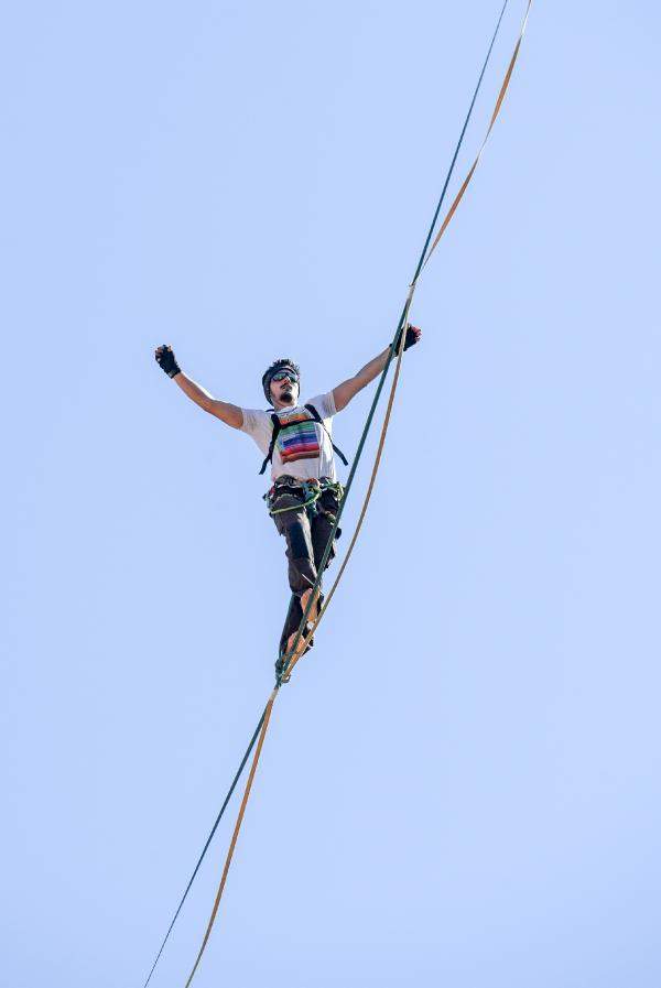Bölgedeki küçük pansiyonlarda kalan sporcular, gün boyunca metrelerce yükseklikteki ip üzerinde karşıya yürümeye çalışıyor. Yürüyüşler sırasında dengelerini kaybeden sporcular, bellerinden bağlı güvenlik halatları sayesinde havada asılı kalıyor. Dengelerini sağlayıp ipe tekrar tırmanan sporcular, kaldıkları yerden yürüyüşlerini sürdürüyor. İzleyiciler ise nefeslerini tutarak bu anları takip ediyor.