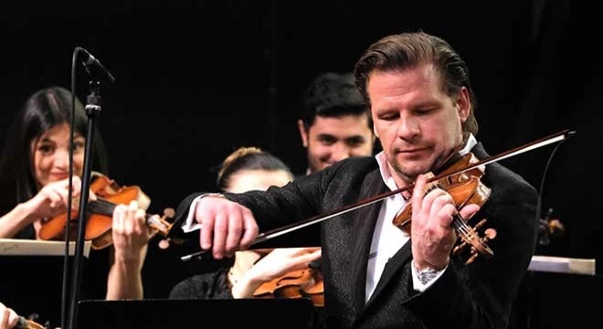 Konserin solisti, uluslararası arenada büyük başarılara imza atan keman virtüözü Kirill Troussov oldu. Prestijli orkestralarla verdiği konserler ve kazandığı sayısız ödülle adından söz ettiren Troussov, Max Bruch'un 'Benim tüm dünyayı aşan konçertom' dediği 1 numaralı Keman Konçertosu ile dinleyicileri büyüledi. Konçertonun finalinin ardından seyircinin yoğun isteğini geri çevirmeyen Troussov, orkestrayla birlikte sahnede kalmaya devam ederek, Paganini'nin 'Venedik Karnavalı' eserini kendi yönetiminde seslendirdi.