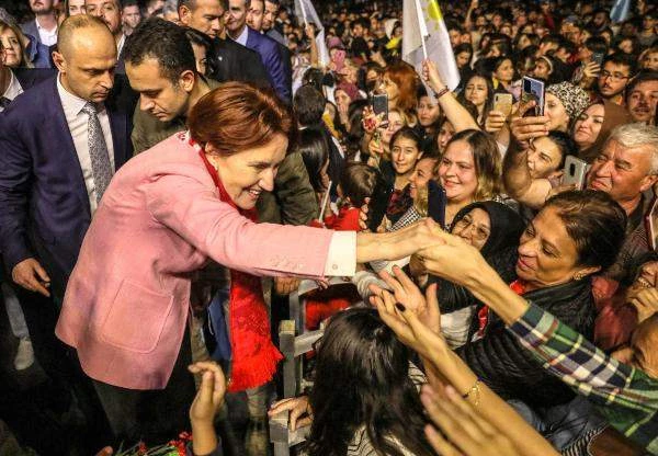 Meral Akşener, törene katılan vatandaşların arasından geçip, çiçek dağıtarak alana geldi. Akşener, oturduğu sırada protokole gelen bir çocuğa, kulağından çıkarttığı küpeleri hediye etti. Burada konuşan Akşener, gençleri ve kadınları görünce Atatürk’ün niçin cumhuriyeti gençlere miras bıraktığını anladığını belirterek, 'En büyük görev çocuklar sizin, cumhuriyet sizlere emanet. Bugün size süfli diyen bir cumhurbaşkanı ve Atatürk’ü unutturmaya çalışan bir iktidar var. Buna rağmen inatla bu ülkeyi seven, bu ülkede kalacak, ‘Bu cumhuriyetin emanetçisi biziz’ diyen sizler varsınız. Belediye başkanlarımız hizmetlerini kısacık anlattılar. Çalmazsanız, çaldırmazsanız, adam kayırmazsanız, yandaş kayırmazsanız, 11 maaş alan danışmanlar atamazsanız demek ki sizin paranızla, verginizle size hizmet edilebilirmiş” dedi.