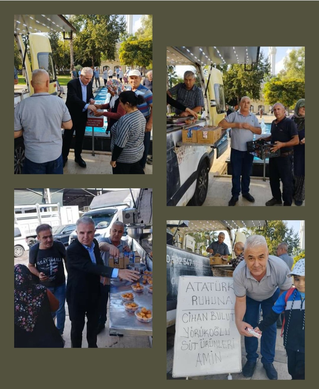 Ak Parti'den Döşemealtı Belediye Başkanı olabilmek için çalışmalar yürüten Antalyalı iş insanı Cihan Bulut, 10 Kasım Atatürk'ü Anma Etkinlikleri kapsamında Döşemealtı Cuma Pazarı yanında Atatürk ve silah arkadaşlarının ruhuna vatandaşa lokma ikram etti.