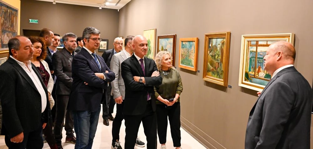 Antalya Kültür Sanat’ta sanatseverlerin ziyaretine açılan iki ayrı serginin basın lansmanı ATSO Başkanı Ali Bahar ev sahipliğinde gerçekleşti. Lansmana Eren Eyüboğlu’nun torunu Rahmi Eyüboğlu, Seramik Sanatçısı Mehmet Tüzüm Kızılcan, Başkan Bahar’ın eşi ve seramik sanatçısı Şebnem Bahar, Sanat Tarihçisi ve Küratör Ömer Faruk Şerifoğlu, ATSO Başkan Yardımcısı Boğaçhan Göksu, Yönetim Kurulu Üyeleri Hüseyin Sarı ve Hakan Pakalın, AKS Yönetim Kurulu Üyesi & ATSO Meclis Üyesi Ömer Gilan, ATSO Meclis Üyesi Durmuş Küçükayaz ile davetliler katıldı. Sergide çağdaş Türk resim sanatının özgün isimlerinden Eren Eyüboğlu'nun 1907-1988 tarihleri arasındaki eserlerinin yer aldığı, ‘Paris'ten Antalya'ya Renk ve Çizginin Peşinde - Eren Eyüboğlu’ başlıklı 46 eser ve çağdaş Türk seramiğin geliştiği döneme tanıklık eden sanatçı Mehmet Tüzüm Kızılcan’ın ‘19612023 Retrospektif Sergisi’nde 90 eseri yer aldı. Sanat Tarihçisi Ömer Faruk Şerifoğlu ve Akademisyen & Sanatçı M. Candan Güngör’ün küratörlüğünde hazırlanan iki sergide toplam 136 eser 11 Haziran tarihine kadar sanatseverlerin gösterimine sunulacak.
