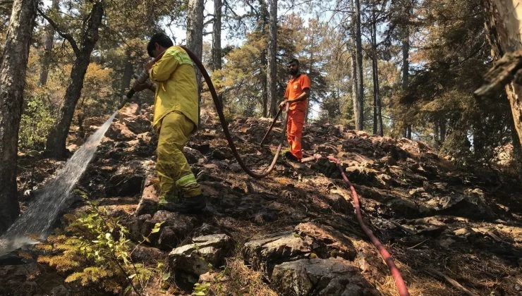 Antalya’nın Akseki ilçesinde kontrol altına alınan orman yangınında havadan ve karadan soğutma çalışmaları devam ediyor. 22 saattir çalışan orman işçileri ise yangının kontrol altına alınması ile derin bir nefes aldı.