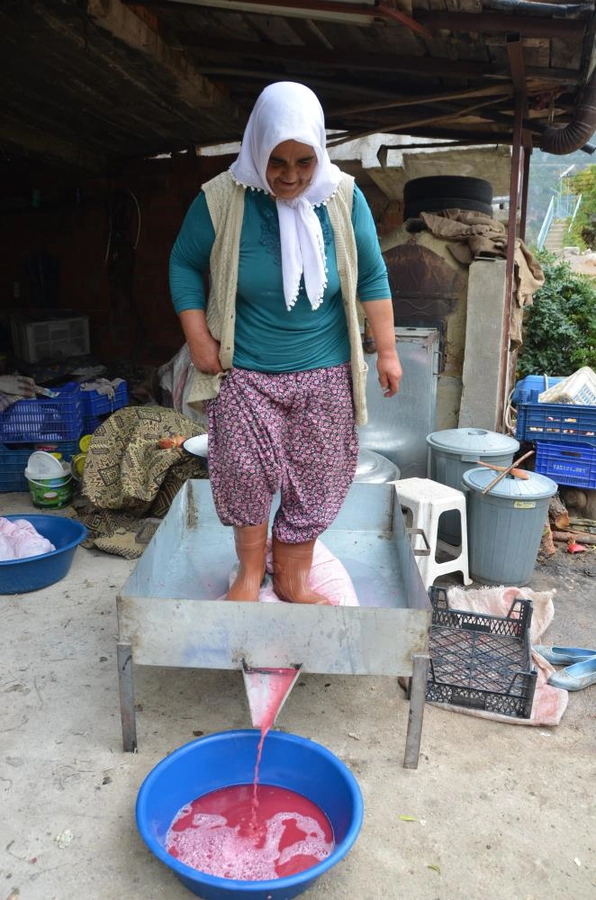 Nar ekşisi yapımının zahmetli olduğunu belirten üreticilerden Akseki'nin Alaçeşme Mahallesi'nde yaşayan 92 yaşındaki Rahime Uslu, ilçede yaşayan kadınların binbir emekle hazırladıkları nar ekşilerinin yemeklerin vazgeçilmezi olduğunu söyledi. Uslu, "Komşularımla birlikte narları ağaçlardan topluyoruz. Narları kırıp tanelerini leğenlerde biriktiriyoruz, sonra çuvallara koyup kendi yaptığımız şırahanelerde eziyoruz. Ertesi gün sabah erken saatlerde odun ateşinde 5-6 saat kaynatıyoruz. Kıvamına gelmeden ocaktan indirmeyiz. Hiçbir katkı maddesi koymuyoruz, tamamen doğal yapıyoruz. Çok zahmetli ama bir o kadar da lezzetli oluyor" dedi.