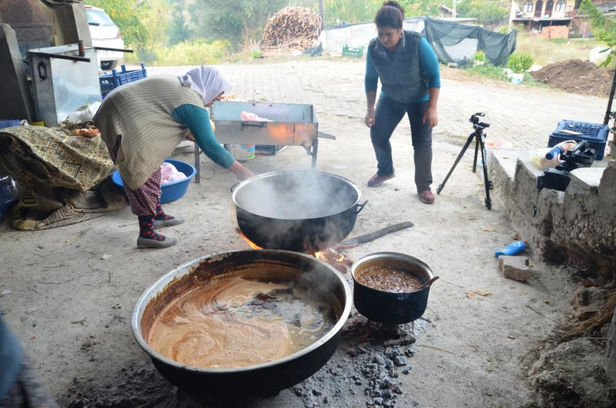 Elde edilen nar suyu süzüldükten sonra bakır tavalarda, odun ateşinde saatlerce kaynatılıyor. Koyulaşıncaya kadar kaynatılan nar suyu, soğutularak şişelere dolduruluyor ve sofralarda kullanılmak üzere raflarda yerini alıyor. Kadınlar, tüm bu üretim sürecini dayanışma usulüyle birlikte gerçekleştiriyor.