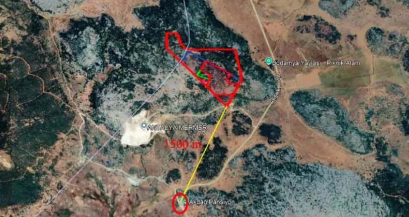 Antalya’nın Akseki ilçesinde son yıllarda hızla artan mermer ocaklarına bir yenisi daha ekleniyor. Orman arazisi üzerinde 25 hektara (34 futbol sahası) yakın alanda açılacak olan mermer ocağında yıllık 700 bin metreküp mermer çıkarılması hedefleniyor.