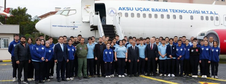 Boeing 737-400 tipi dev uçak, iniş takımları kırıldığı için ıskartaya çıkmış ve Dışişleri Bakanı Mevlüt Çavuşoğlu'nun da araya girmesiyle 2019 yılında Aksu Uçak Bakım Teknolojisi Mesleki ve Teknik Anadolu Lisesine getirilmişti. Okulun bahçesine taşınan uçağa, 8 aylık çalışmayla, kütüphane, müze ve mini sinema salonu kuruldu. Okul sıralarında anlatılan dersler Zamanın Dışişleri Bakanı Antalya Milletvekili Mevlüt Çavuşoğlu'nun açılışını yaptığı uçak üzerinde 5 öğretmenin verdiği uygulamalı derslerle 40 dakikalık süre içerisinde 15'er kişilik gruplar halinde öğrencilere tek tek anlatılıyor. Okul bahçesinde bulunan F-4 Phantom ise 2020 yılında Hava Kuvvetleri Komutanlığı Eskişehir 1. Hava İkmal Bakım Merkezi Komutanlığı tarafından bağışlandı.