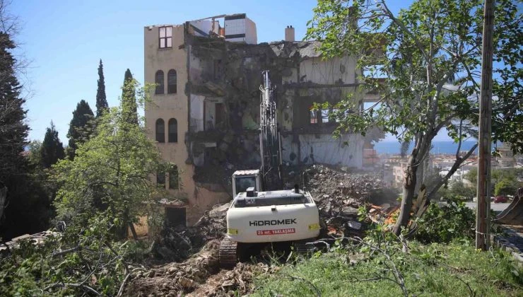 Alanya Belediyesi, Sugözü Mahallesi’nde riskli yapı olarak değerlendirilen bir binayı yıktı.