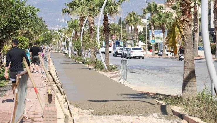Alanya Belediyesi’nin Alanya Merkez-Kargıcak arasında kesintisiz bisiklet yolu oluşturmak için başlattığı Sahil Bandı Düzenleme Projesi tüm hızıyla sürüyor. Oba Çayı-Atatürk Anıtı etabında çalışmaların tamamlanmasının ardından Oba Çayı-Tosmur etabında başlatılan çalışmaların da kısa sürede bitirilmesi hedefleniyor. Çalışmalar çerçevesinde bisiklet yolunun beton döküm işi hızlı bir şekilde devam ediyor.