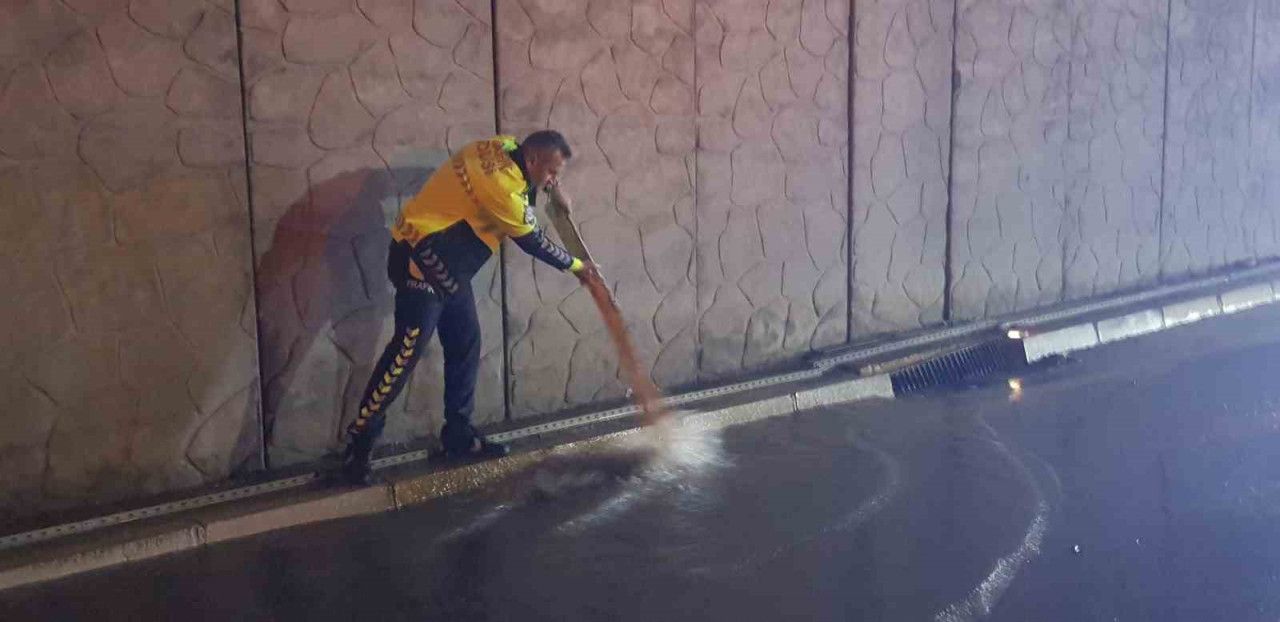 Çevre Yolu üzerindeki alt geçitler gece yarası saat 02.30 sıralarındaki yağışın ardından göle döndü. Antalya Mersin Yolu Alanya sınırları içindeki alt geçitte bir otomobil su içinde kaldı ve ulaşım kapandı. 6 trafik ekibi bölgeye sevk edilirken, bekleyen yüzlerce araç polislerin sıkı kontrolü altında tali yollara yönlendirildi. Otomobil çekici tarafından otoparka kaldırıldı. Biriken suyun çekilmesi için trafik ekipleri tarafından Karayollarına bilgi verildi. Karayollarının bölgeye bir araç ve tek bir personel gönderirdiği görüldü. Karayollarından gelen diğer 3 kişilik ekip yaptıkları incelemede devirdaim pompasının çalışmadığını belirledi. Pompaların bulunduğu deponun anahtarına ulaşamayınca bu kez yedek anahtarı almak için bölgeye bir ekip daha çağrıldı. Bir yandan araç trafiğini kontrol eden trafik polisleri diğer taraftan ise ise önce Alanya İtfaiyesini ardından ASAT ekiplerini aradı. ASAT atık açma kapama ekipleri aşırı sudan dolayı yağmur drenaj kanalları görünmeyince polisler vidanjör çağırdı. Vidanjör bir taraftan suyu çekerken, polisler çevrede buldukları sopa ve odun parçaları ile yağmur drenaj kanallarınını tıkayan otları ve pislikleri temizlemek için büyük çaba harcadı. Sabah saatlerine doğru alt geçitteki su pompası dairesinin anahtarının gelmesi üzerine Karayolları ekipleri pompaları çalıştırdı. Alt geçitte biriken su 1 saat içinde boşaltılırken, ekipler biriken çamuru süpürgelerle temizledi. Temizliğin ardından yol saat 06.00 sıralarında trafiğe açıldı. /ALANYAHABER