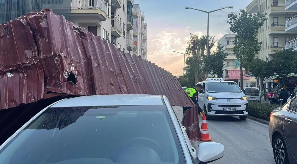Meteorolojinin, Antalya'nın doğu ilçeleri için yaptığı kuvvetli yağış ve fırtına uyarılarının ardından Alanya'da gece saatlerinde etkili olan şiddetli fırtına, bir inşaat alanındaki demir korkuluklarını yerinden söktü. Rüzgârın savurduğu korkuluklar, park halindeki aracın üzerine devrilerek maddi hasara yol açtı.