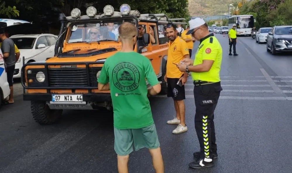 Antalya'nın Alanya ilçesinde polis ekipleri, safari düzenleyen araçlara yönelik denetim yaptı.