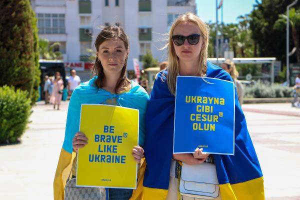 Rusya'nın Ukrayna'ya saldırısının ardından savaştan kaçıp Antalya'ya gelen ve kentte yerleşik yaşayan Ukraynalılar, Muratpaşa Kent Meydanı'nda bir araya gelerek ülkelerini işgal eden Rusya'yı protesto etti. Ellerinde pankartlar, dövizler bayraklar taşıyan kalabalık grup, zaman zaman Rusya aleyhinde sloganlar attı. Bazı kişiler ellerinde Türk bayrağı taşırken, bazı konuşmacılar da kendilerine misafirperverlik gösteren Türk halkı ve yetkililere teşekkür etti.