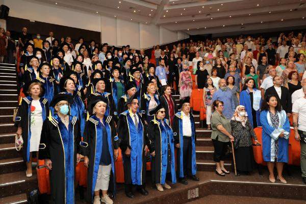 Açılış konuşmalarının ardından mezuniyet törenine geçildi. Törende 60+ Tazelenme Üniversitesi en çok yaş almış birinci öğrenci İzzettin Gökalp'a başarı belgesi Prof. Dr. Aygen Yılmaz tarafından, en çok yaş almış ikinci öğrenci Hamdi Oktay Tutçuoğlu'na başarı belgesi Prof. Dr. İsmail Tufan tarafından, en çok yaş almış üçüncü öğrenci Mine Vural'a ise başarı belgesi Sağlık Bilimleri Fakültesi Dekan Yardımcısı Doç. Dr. Nilüfer Korkmaz Yaylagül tarafından takdim edildi. Tüm tazelenme öğrencileri başarı belgelerini aldıktan sonra hep birlikte sahnede keplerini havaya fırlatarak mezuniyeti kutladı.