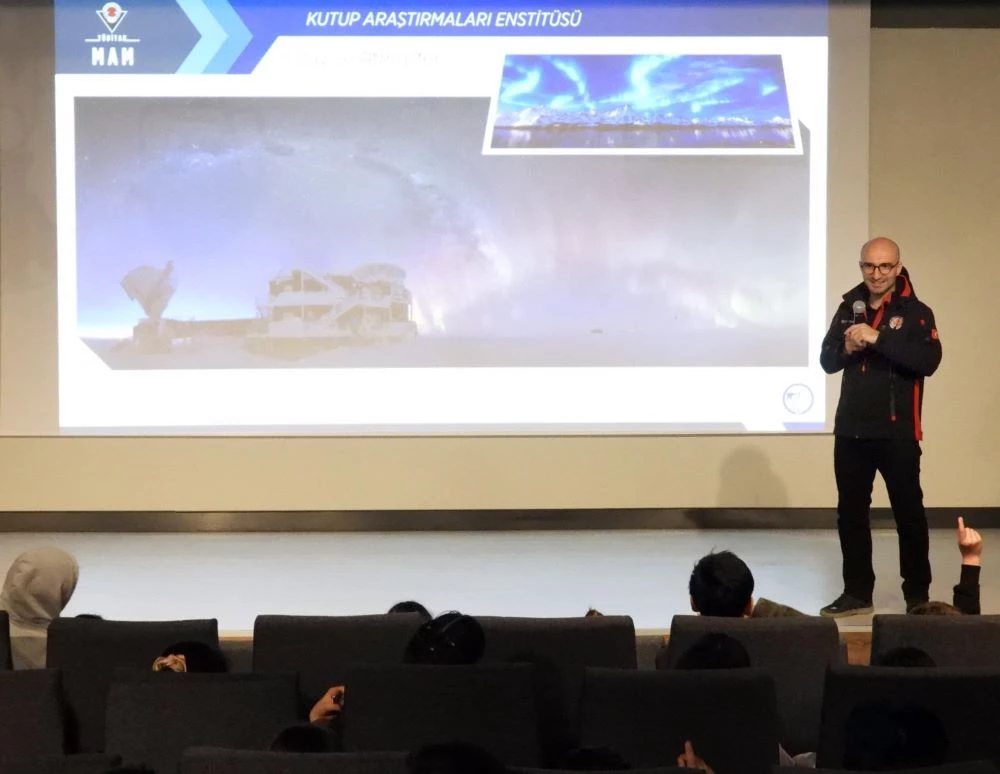 TÜBİTAK MAM Kutup Araştırmaları Enstitüsünden Kaptan Sinan Yirmibeşoğlu, Antalyalı öğrencilere düzenlenen konferanslarda kutuplardaki deneyimlerini paylaştı. ‘Antartika Antalya’ya Geliyor’ adlı yeni sergi alanı hazırlanan Antalya Bilim Merkezi’nde 2 farklı ortaokul öğrencileriyle buluşan TÜBİTAK Uzman Araştırmacısı Yirmibeşoğlu, Türkiye’nin Kuzey ve Güney Kutuplarında yaptığı bilimsel araştırmaları anlatan belgeseller izleterek sunumuna başladı.