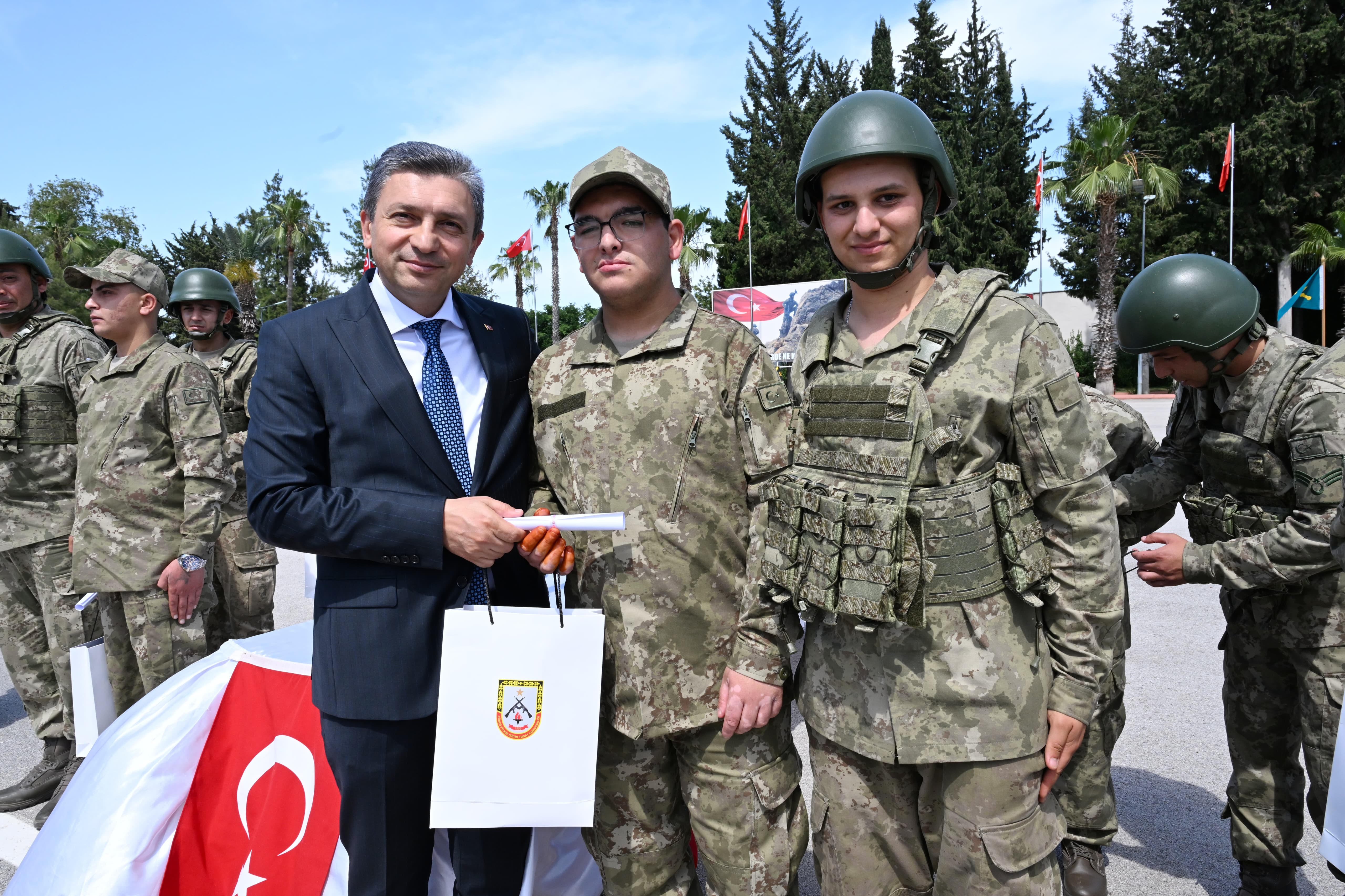 Vali Hulusi Şahin, Engelliler Haftası münasebetiyle Antalya 3. Piyade Eğitim Tugay Komutanlığı’nda düzenlenen Temsili Askerlik ve Yemin Töreni’ne katıldı. Törende Vali Şahin’e Antalya Büyükşehir Belediyesi Genel Sekreteri Mustafa Gürbüz, Cumhuriyet Başsavcı Vekili Adnan Tabar, Kepez Kaymakamı Nusret Şahin, Muratpaşa Kaymakamı Dr. Orhan Burhan, Döşemealtı Kaymakamı Nuri Özder, Konyaaltı Kaymakamı Rahmi Köse, 3. Piyade Eğitim Tugayı Komutanı Piyade Komando Albay Mehmet Kayhan ve asker aileleri eşlik etti.