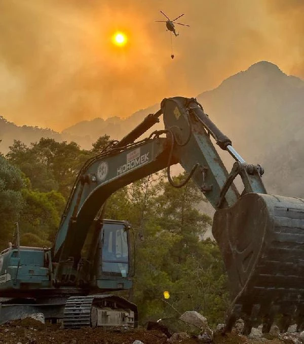 'Evet, yangın kontrol altına alınmamış olmakla birlikte kısa dar kanyonların arasına sıkıştırılmış, etrafı kara araçlarıyla çevrilmiş, hava araçlarıyla bölge dövülmektedir. Yerleşim yerlerini tehdit eden bir durum yoktur. Boşaltılan köy, mahalle yoktur. Can kaybımız yok, yanan yerlerde farklı canlı ve bitkiler var bu da çok üzücü. Dün itibarıyla ülkemizin farklı yerinde 8 yangın çıktı. İstanbul'da, İzmir'de 2 adet, Çanakkale, Yalova'da yangınlar çıkmış ve kısa sürede kontrol altına alınmıştır. Buradaki yangın halen şu an için vadilerde devam etmektedir. Kara araçlarımız açılan yoldan belirli mesafede ulaşabilmiştir. Bölge Beydağları Sahil Milli Parkı sınırı içinde kalan bir alandır.'