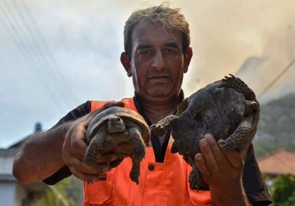 Dernek üyesi Faruk Aydın, 'Yangın bölgelerinde faaliyet gösteriyoruz. Soğutma çalışmaları tamamlanan bölgelerde kurtarılmayı bekleyen ya da zarar gören hayvanların, yanımızdaki veteriner teknikerlerimizle yaralarını sarıyoruz. 18 kişilik ekibimizle tüm bölgelerde faaliyet gösteriyoruz. Yangında kaçamayan hayvanları korumaya alıyoruz. Manisa’daki yangında, yavru kedi küllerden kaçamamış, patisi, bıyığının bir kısmı yanmıştı. Annesi korkudan kaçmıştı. Anneyi de yakalayıp, korumamıza aldık. Kaplumbağalarımızı da tedavi ediyoruz' diye konuştu. /MİLLİYET.COM.TR