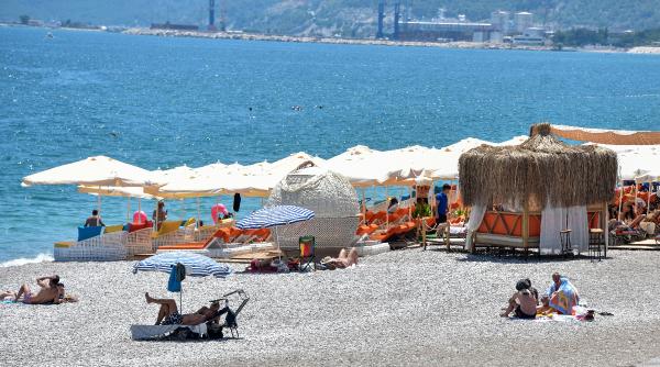 Turizm kenti Antalya'da, en çok ziyaret edilen sahillerden Konyaaltı, müşterilerine locada özel hizmet sunan, şezlong şemsiye kiralama yöntemiyle tatilcileri ağırlayan işletmeleri, giriş ücreti ödenmeyen plajlarıyla turizm sezonunun en yoğun günlerini yaşadı.