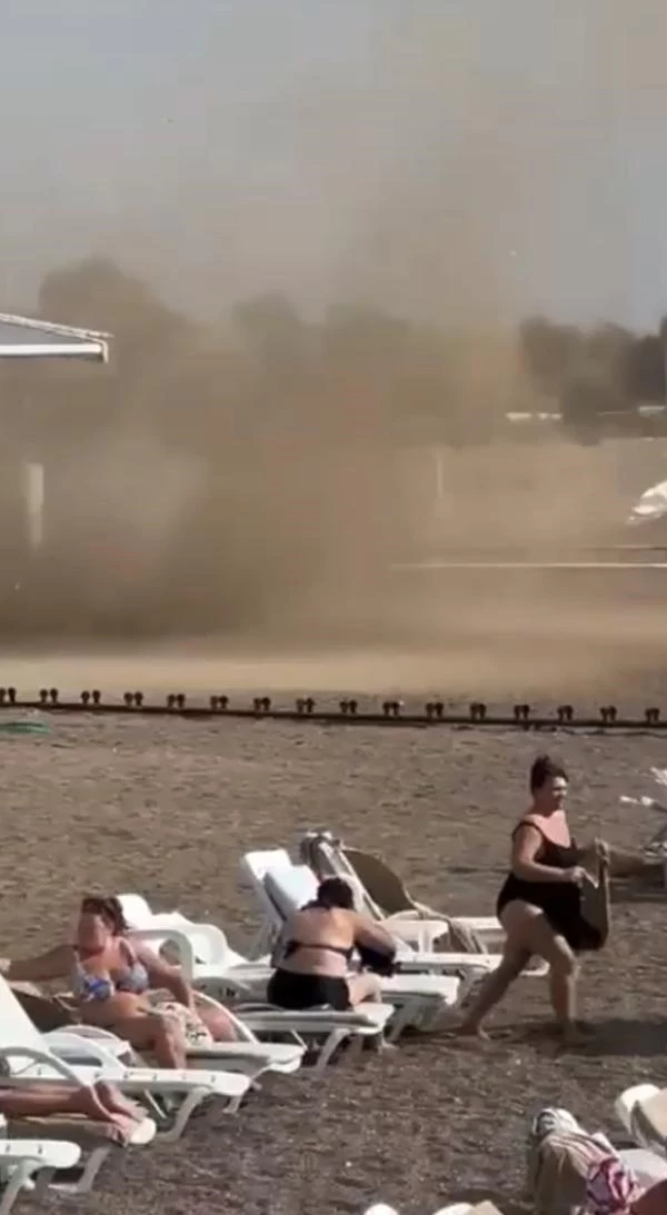 Muratpaşa ilçesindeki Lara Plajları bölgesinde öğle saatlerinde kıyıya yakın bölgede çıkan ve karaya ulaşan hortum, kısa süreli paniğe neden oldu. Deniz şemsiyeleri ve plaj havluları havada uçuşurken, sahildekiler sağa sola kaçıştı. Tatilciler, o anları cep telefonu kamerasıyla görüntülendi. Tatilcilerin çığlıkları cep telefonu görüntülerine de yansıdı.