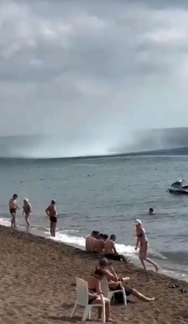 Antalya'nın Lara bölgesindeki plajda çıkan hortum, güneşlenen ve denize girenlere korku dolu anlar yaşattı. Tatilciler sağa sola kaçışırken, o anlar cep telefonuyla görüntülendi.