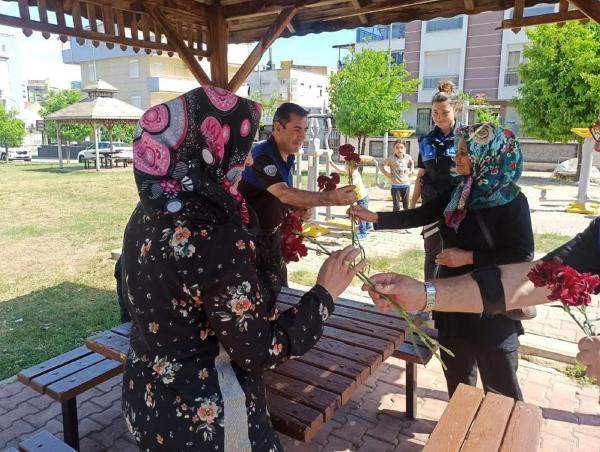Antalya Emniyet Müdürlüğü ekipleri tarafından 'Anneler Günü' nedeniyle Kepez ilçesinde annelere çiçek dağıtıldı.