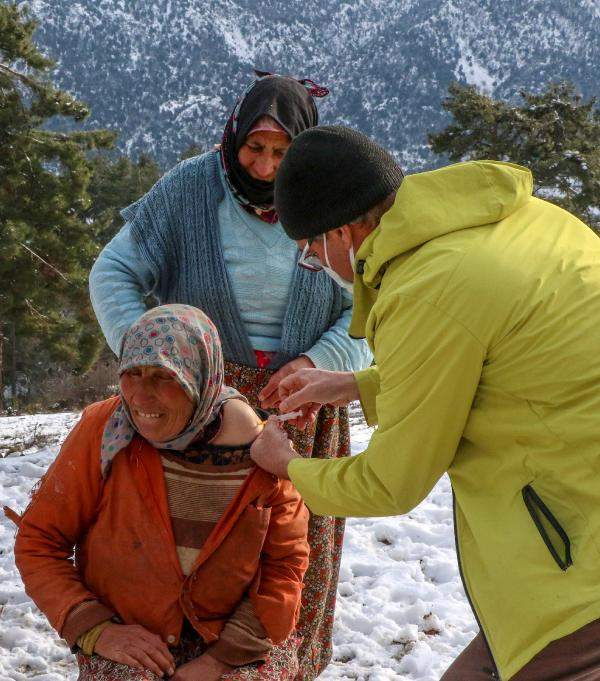 Antalya'nın karla kaplı yaylalarında ulaşım imkanı olmayan çobanlara, koronavirüs aşıları, zorlu iklim ve yol şartlarını aşan sağlık ekibi tarafından yapıldı.