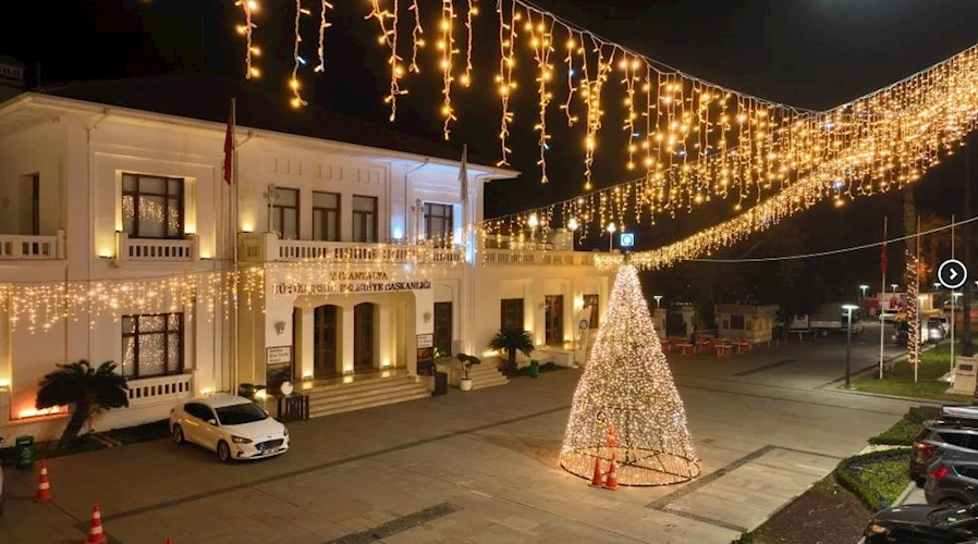 Antalya Büyükşehir Belediyesi, yılbaşına sayılı günler kala kent merkezi ve ilçelerde cadde ve meydanları yılbaşı ağaçları ve ışıklandırmalarla süsledi.