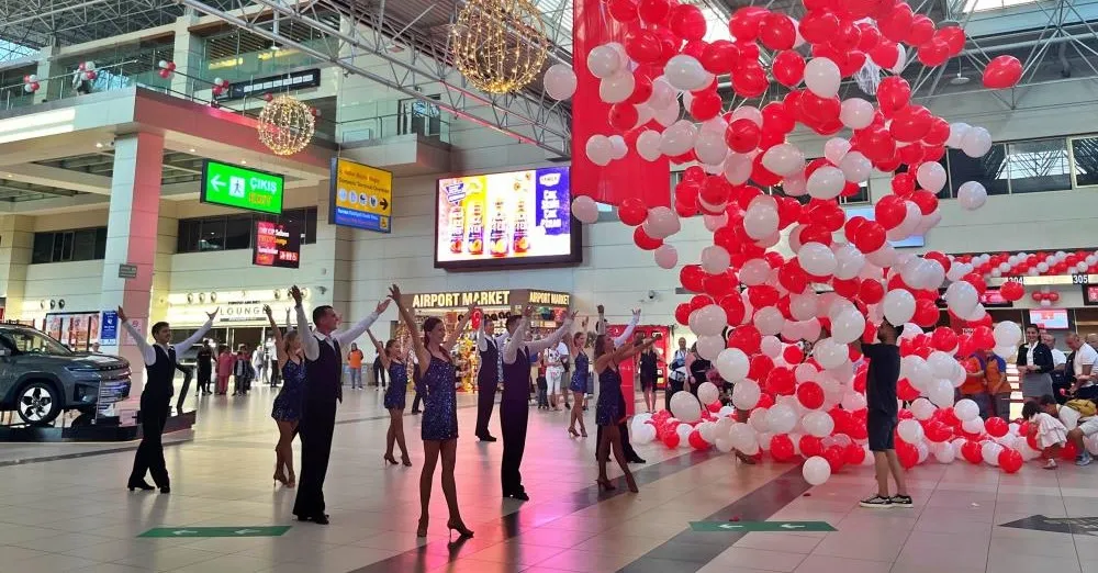 Fraport TAV Antalya Havalimanı İç Hatlar Terminali giden yolcu salonunda, 30 Ağustos Zafer Bayramı kutlamaları gerçekleştirildi. Tüm terminal, kırmızı beyaz balonlar, Türk bayrakları ve Atatürk posterleri ile süslenerek bayramın ruhunu yansıttı.