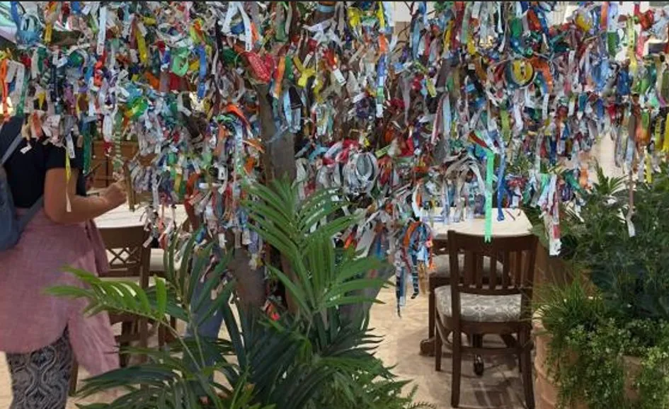 Antalya Havalimanı Dış Hatlar Terminali'ne yerleştirilen dilek ağacı, rengârenk bilekliklerle dikkat çekiyor. Dilek ağacı olarak başlayıp 'Her Şey Dahil Ağacı'na dönen ağaç kenti ziyaret eden turistlerin bileklik koleksiyonu oldu.