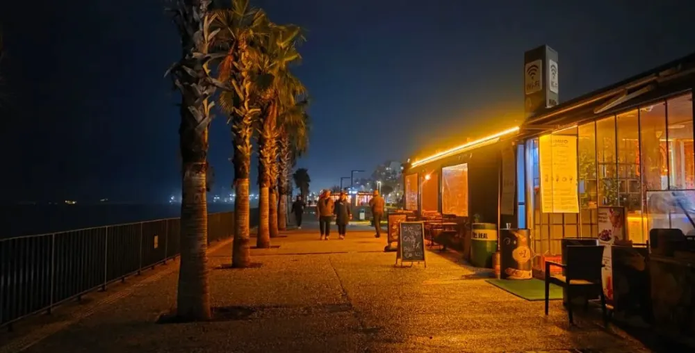 Dünyaca ünlü Konyaaltı Sahili'nde akşam saatlerinde yaşanan ışıklandırma sorunu, hem Antalyalıları hem de turistlere isyan ettirdi. Yürüyüş yollarının karanlıkta kalması nedeniyle vatandaşlar, önlerini görebilmek için işletmelerin ışıklarına muhtaç kaldı.