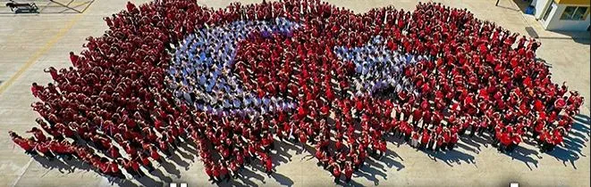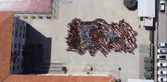 Antalya'nın Serik ilçesinde Tekeli Ahmet Can Özpınar Ortaokulu'ndaki 23 Nisan Ulusal Egemenlik ve Çocuk Bayramı kutlamalarında 1300 öğrenci ay yıldızlı Türkiye haritası oluşturdu.