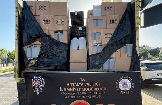 Antalya’da polis ekiplerince durdurulan TIR’da 2 bin litre sahte alkol ele geçirdi.