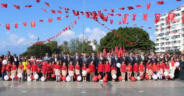 Törende İl Milli Eğitim Müdürü Emre Çalışkan Cumhuriyet Meydanı’ndaki Atatürk anıtına çelenk bıraktı. Saygı duruşunun ardından Antalya Büyükşehir Belediyesi Bandosu eşliğinde İstiklal Marşı okundu. Daha sonra anıta diğer kurum ve kuruluşlar çelenklerini bıraktı. Kutlamalar Cam Piramit’te devam etti.
