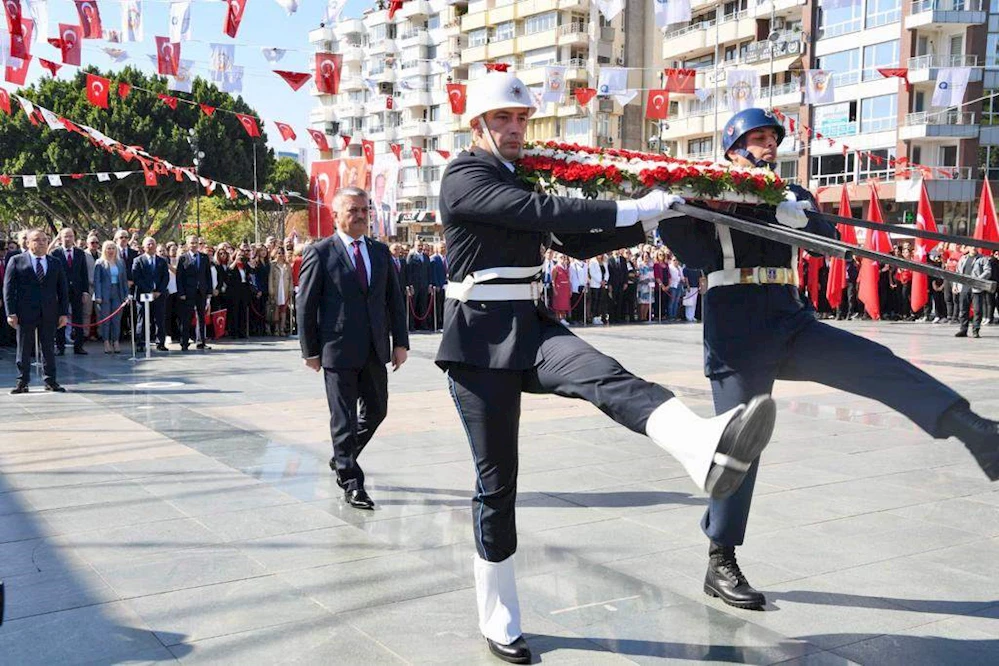 Törende Vali Ersin Yazıcı ve Antalya Büyükşehir Belediye Başkanı Muhittin Böcek’in meydandaki Atatürk Anıtına çelenk sunmasının ardından Saygı Duruşu ve İstiklal Marşı’nın okunmasıyla sona erdi.