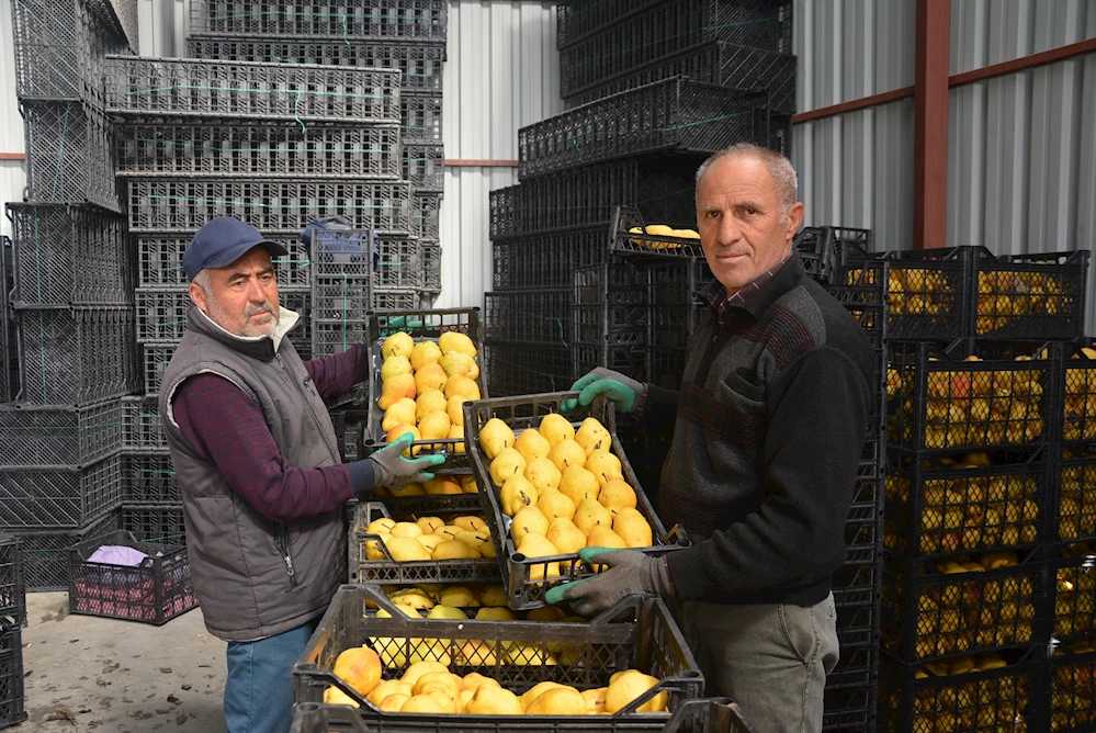Antalya'nın Korkuteli ilçesinde soğuk hava depolarında bekletilen margarit armudu ve ayvada ihracat hareketliliği yaşanıyor.