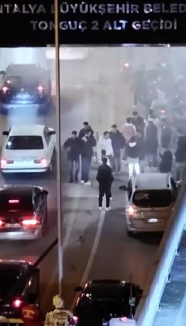 Antalya'da asker uğurlayan bir grup genç, araçlarıyla konvoy yaparken şehir merkezindeki alt geçidi trafiğe kapattı, o anlar cep telefonuyla kayda alındı.