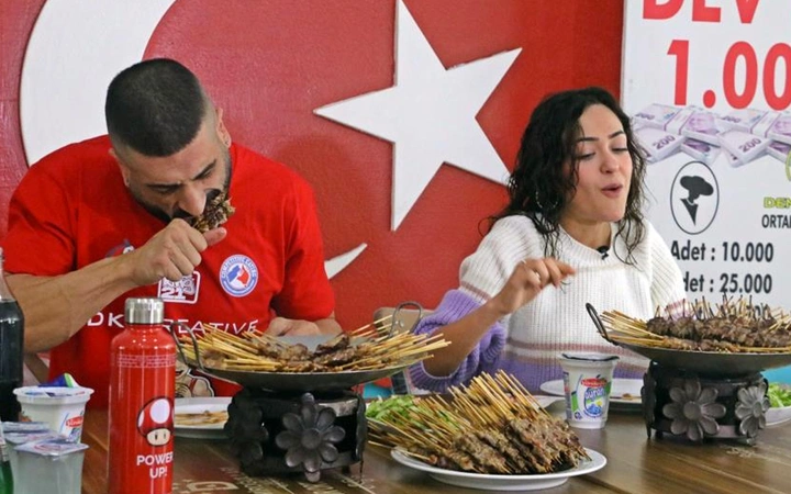 Muratpaşa ilçesinde bir restoranda düzenlenen çöp şiş yarışmasına 33 yaşındaki Avustralyalı James Webb adlı turist damga vurdu. Webb ile daha önce 46 dakikada 315 çöp şiş yiyerek rekor kıran Ceren Yılmaz Ay, 10 bin lira ödül ve tam altın için yarıştı. Yarışmanın başlamasından 4 dakika sonrası rakibinin 200 çöp şiş yediğini gören Ceren, bir süre sonra yemeği bırakıp onu izlemeye başladı.