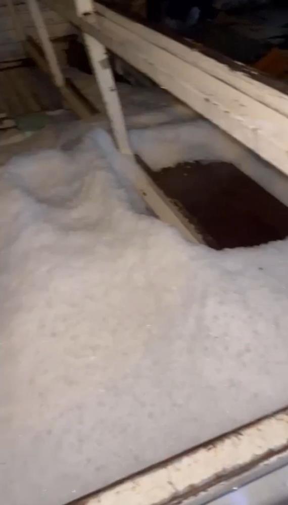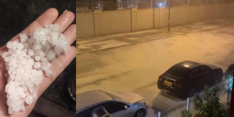 Şiddetli yağış sonrası Konyaaltı'nın Hurma Mahallesi'nde yağmur doluya dönüştü.