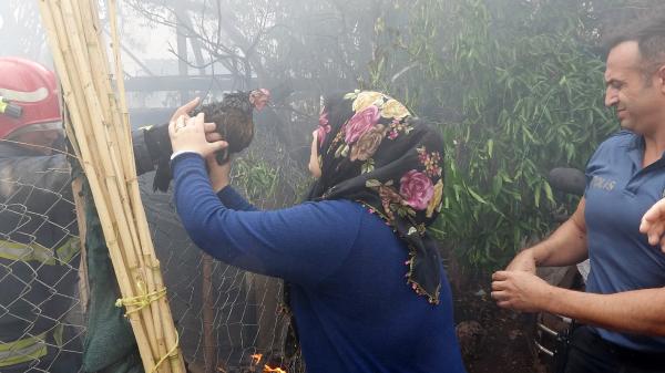 Deponun yanında bulunan bir gecekondunun bahçesinde, kümesteki 7 tavuktan 2'si öldü, 5'i kurtarıldı. Kanatları yanan tavuklara suyla müdahale eden Erdem Sevindik, “Tavukların çıktığını gördüm ve hemen suyla müdahale ettim. İkisi yangına fazla maruz kalmış. Hayata tutundurmaya çalıştım. Hem dumandan etkilenmişler hem de kanatları yanmış' dedi.