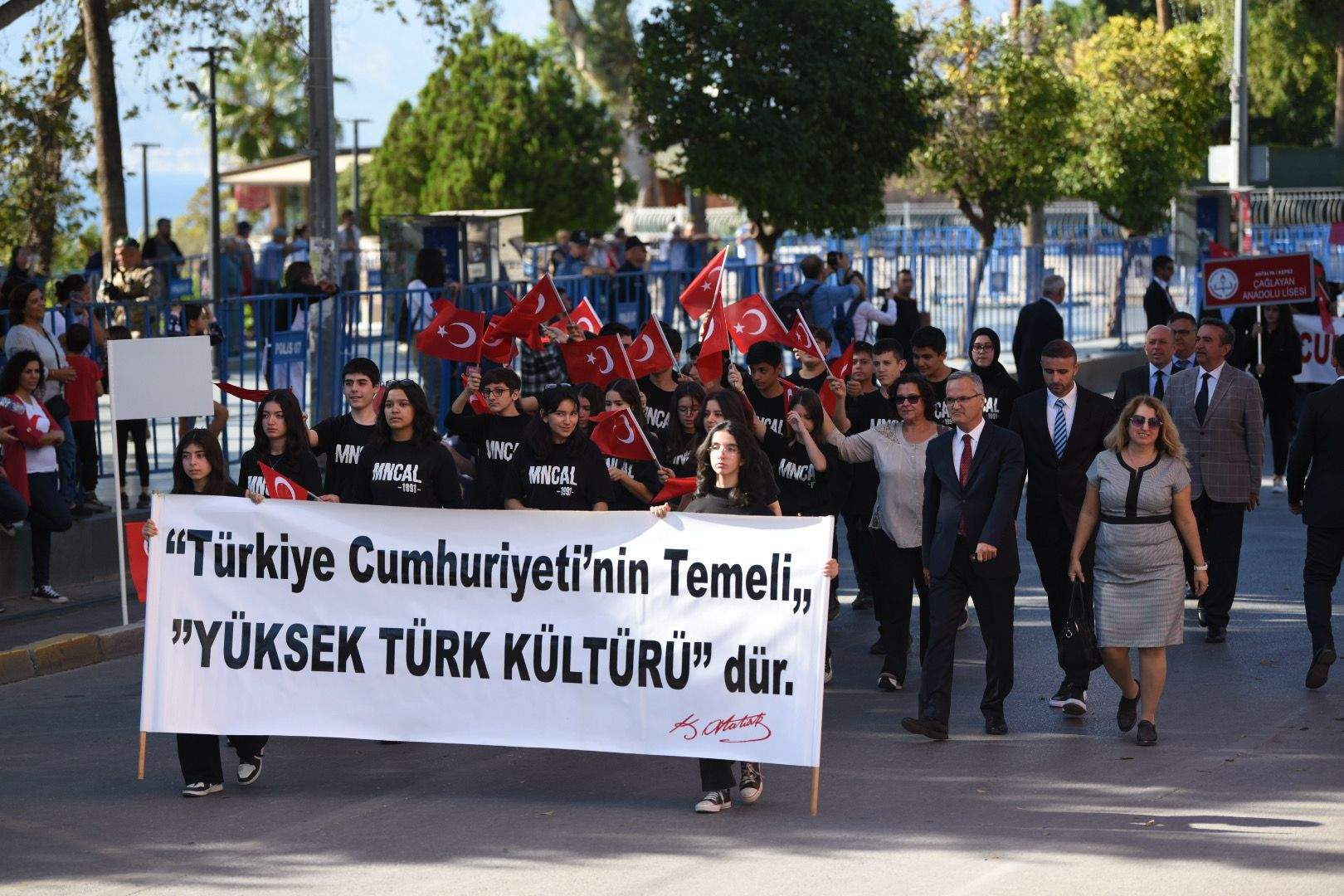 Vali Yazıcı’nın konuşmasının ardından İlhami Tankut Anadolu Lisesi’nden İrem Eski’nin şiir okunması, Antalya farklı okullarından seçilen öğrencilerin oluşturduğu ve Türkiye birinci seçilen halk oyunları ekibi ve Gençlik ve Spor İl Müdürlüğü sporcularının spor gösterileri ile devam eden program, bando takımları, öğrenciler, Şehit yakınları, Gaziler, Türk Silahlı Kuvvetleri, Jandarma Teşkilatı ve Emniyet güçleriningeçiş töreni ile sona erdi. Cumhuriyet Bayramı kutlama etkinlikleri Antalya’nın dört bir tarafında düzenlenen etkinliklerle gün boyu devam edecek. /VARIŞ HABER