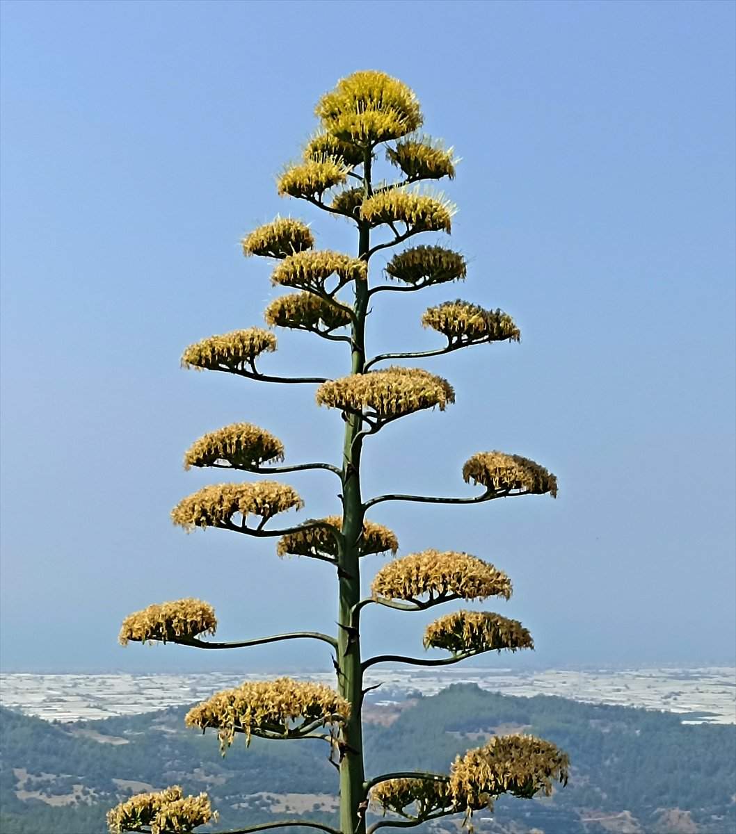 Antalya'nın Kumluca ilçesinde 30 yıl önce süs bitkisi olarak bahçeye dikilen UNESCO'nun Dünya Kültür Mirası Listesi'nde yer alan Agave çiçek açtı.