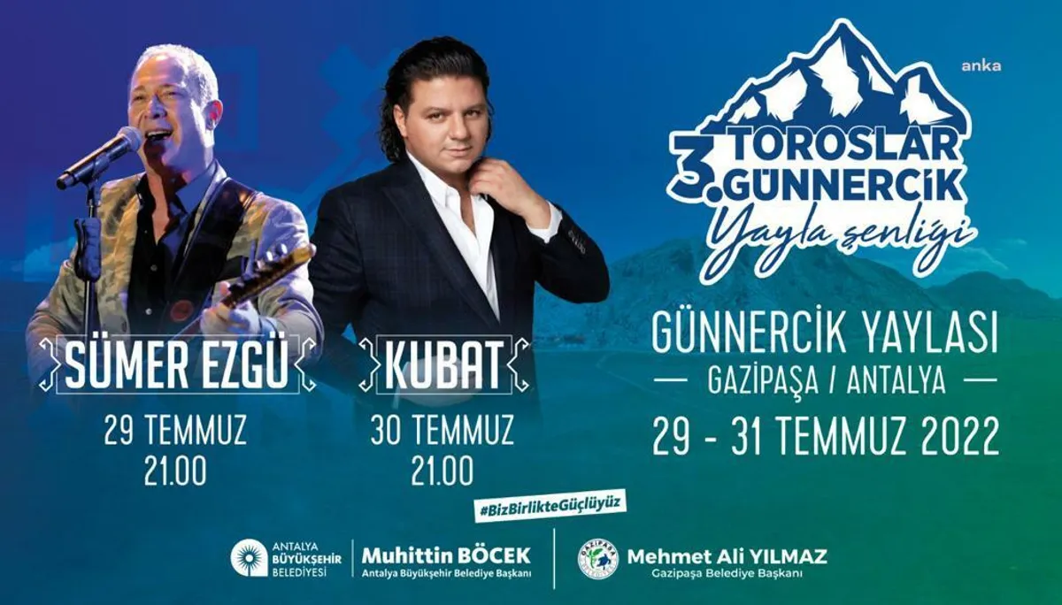 29 Temmuz Cuma günü Sümer Ezgü ve 30 Temmuz Cumartesi günü Kubat'ın sahne alacağı şenlikte yerel sanatçılarda yer alacak, yöresel ve geleneksel oyunlar oynanacak. Şenliğin simgesi haline gelen yörük göçü 30 Temmuz cumartesi günü saat 16.00'da başlayacak. Çocukların şenlikte doyasıya eğlenmesi için çocuk oyun grubu ve animasyon etkinlikleri ilk iki gün aktif olacak. İki gün boyunca konser sonrasında şenlik ateşi yakılacak. Şenliğin son günü sabah erken saatlerde Günnercik yaylasının sembolü olan dağa yansıyan Atatürk silüeti izlenecek. /HABERLER.COM